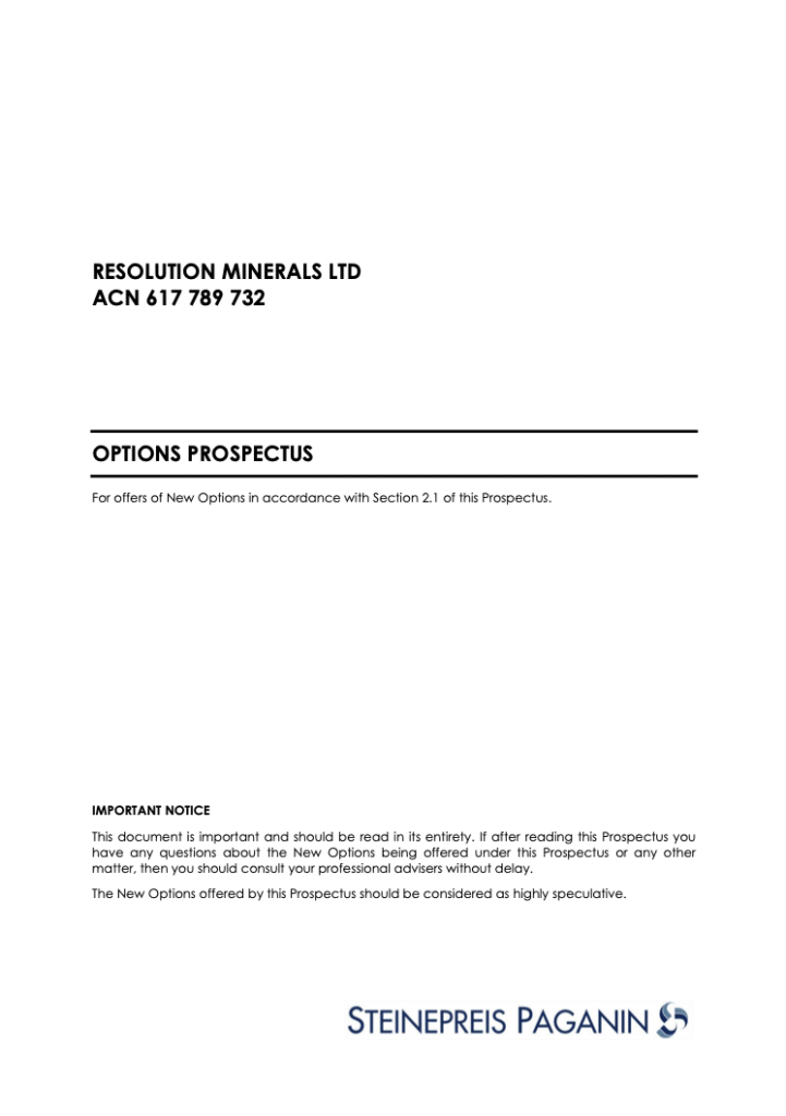 Copyright Resolution Minerals Ltd