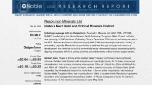 Resolution Minerals Ltd (ASX RML | OTC: RLMLF) is a mineral exploration company currently developing the Horse Heaven Gold-Antimony-Tungsten Project in Idaho, USA with the aim of providing an end-to-end solution for domestic critical minerals supply to US defense industry.